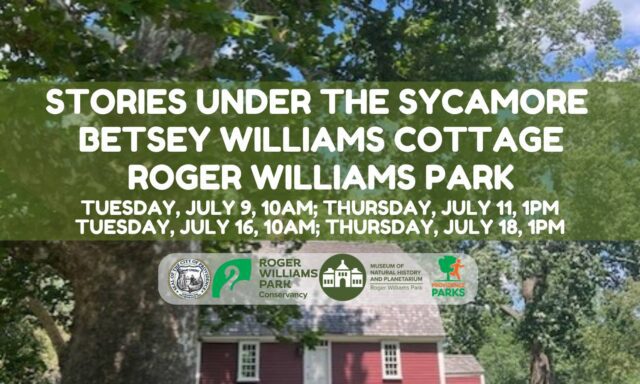 Meet under the beautiful sycamore tree by Betsey Williams Cottage to enjoy a summer story and make a craft in lovely Roger Williams Park.