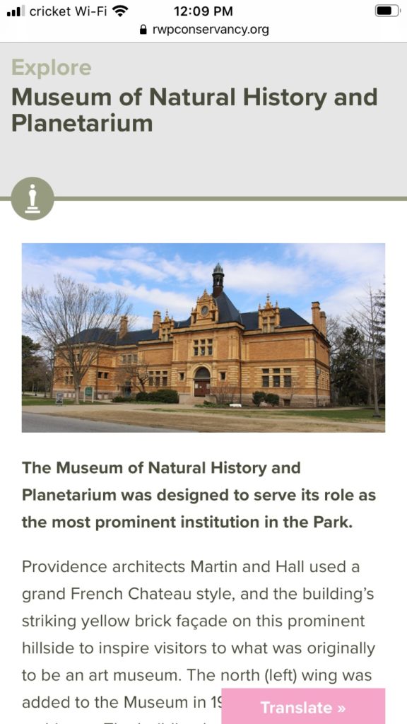 Thanks to the partnership between the Providence Parks Department, Providence Department of Planning and Development, Museum of Natural History and Planetarium, Functional 3-D Designs, and Roger Williams Park Conservancy now you can explore the Park and learn about the Park’s art and architecture with the new Roger Williams Park Self-Guided Tour.