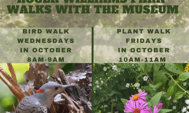 Discover the birds of Roger Williams Park during these morning bird walks. Please wear comfortable shoes and bring binoculars if you have them. Walks begin at the Museum of Natural History in Roger Williams Park at 8:00am.