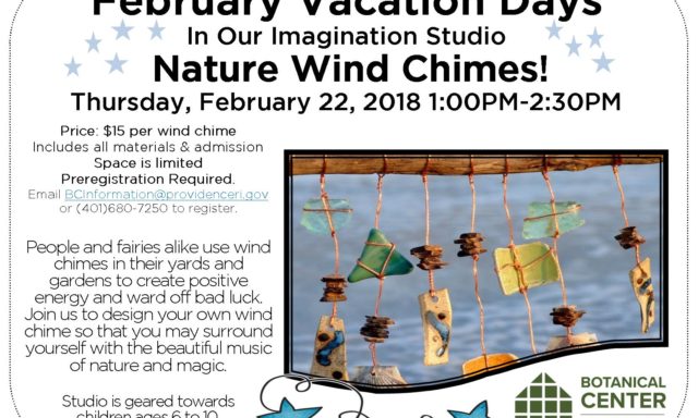 The Botanical Center at Roger Williams Park presents special February school vacation workshops in the Imagination Studio, Wednesday, February 21 through Friday, February 23:
