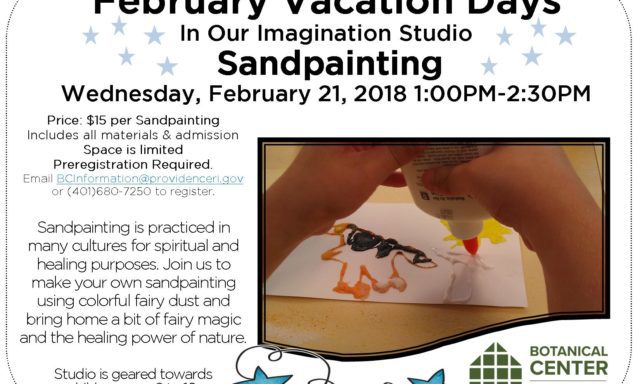 The Botanical Center at Roger Williams Park presents special February school vacation workshops in the Imagination Studio, Wednesday, February 21 through Friday, February 23: