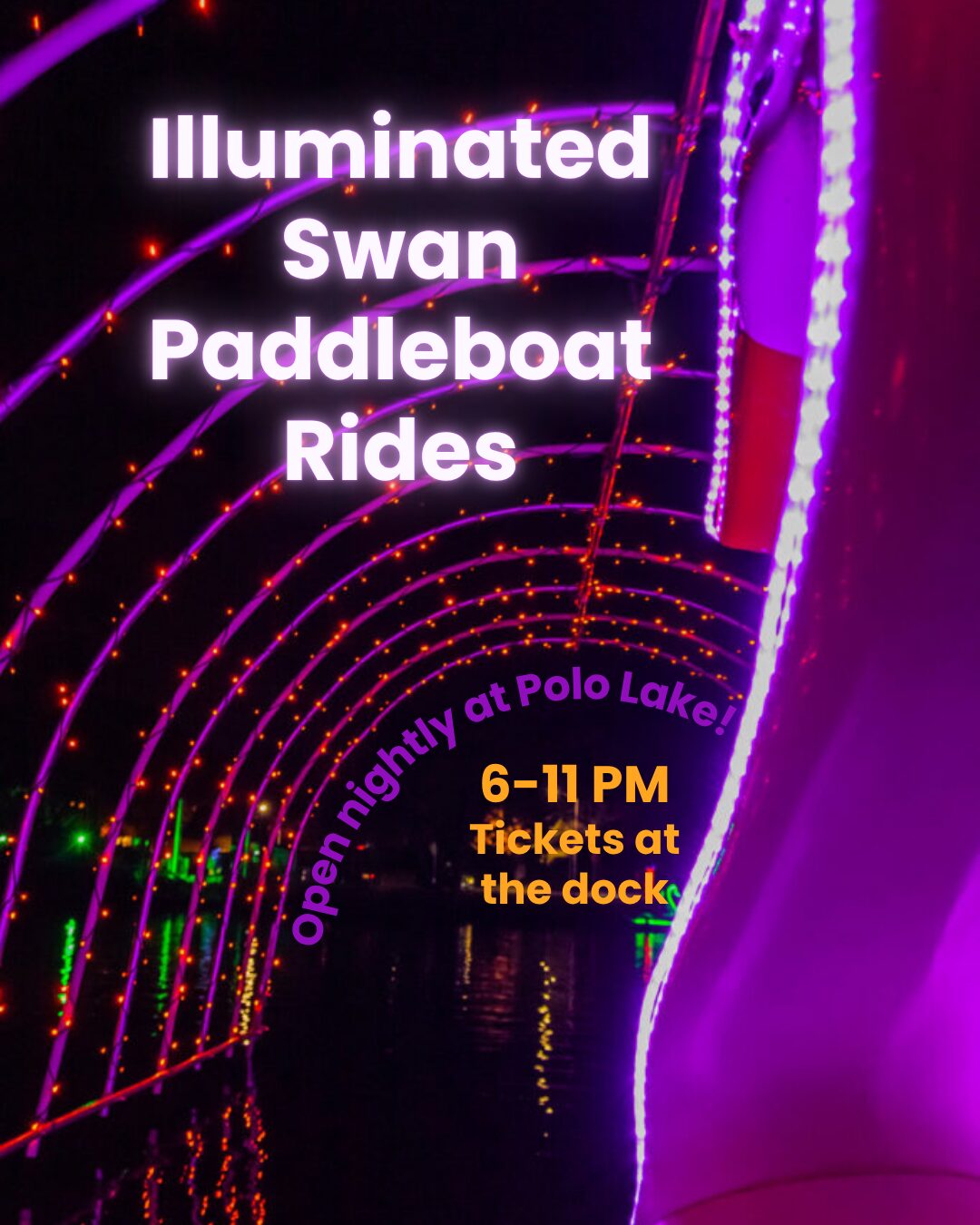 Set sail on Polo Lake aboard an Illuminated Swan Paddleboat! The Park scenery transforms into a glowing dreamscape every night during fall. Tickets are purchased upon arrival at the booth near the dock entrance (no online advance purchase); cash and all major credit cards are accepted.