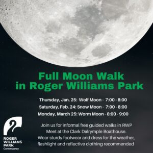 Join us for an evening walk to admire the upcoming full moons in the beauty of the Park by moonlight. Learn more about the night sky and join fellow night owls on this informal free community event. Co-hosted by the RWP Conservancy and the Museum of Natural History.Β Open to all ages and abilities Wear sturdy shoes and dress for the weather. Reflective clothing and a flashlight if you have them.