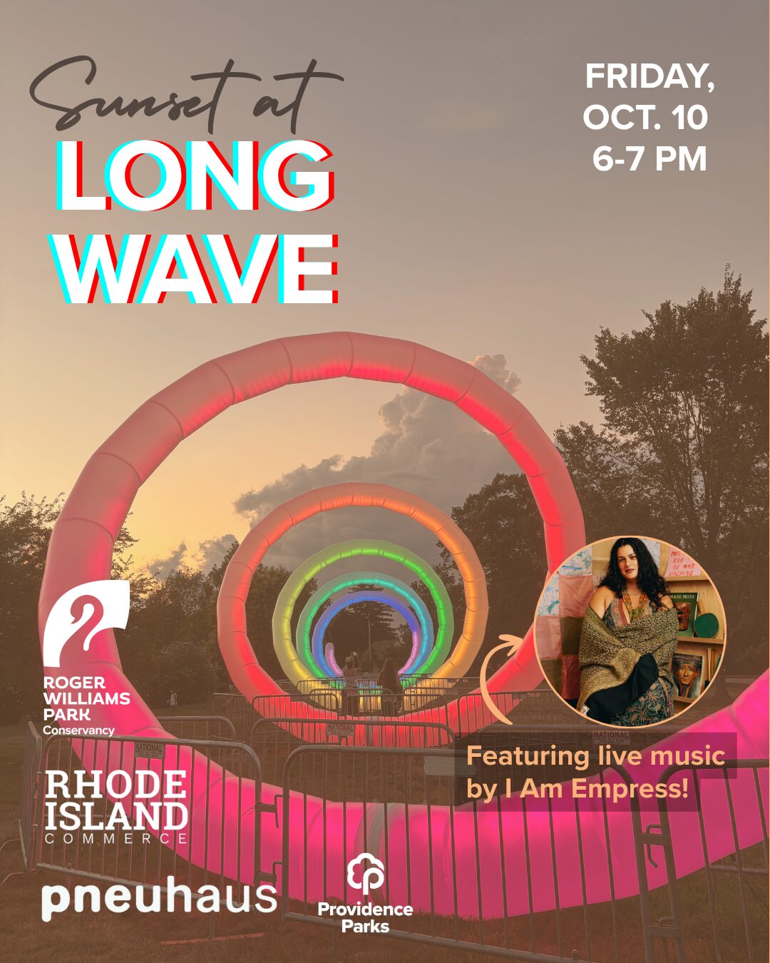 After the sun sets, Long Wave lights up the lawn near the Rose Garden with its mesmerizing spiral structure. Presented by Roger Williams Park Conservancy, this new immersive public art installation combines the talents of Pneuhaus and Smooth Technology, with funding from the RI Commerce Corporation through the RI Rebounds Placemaking Initiative, and support from the Providence Parks Department.