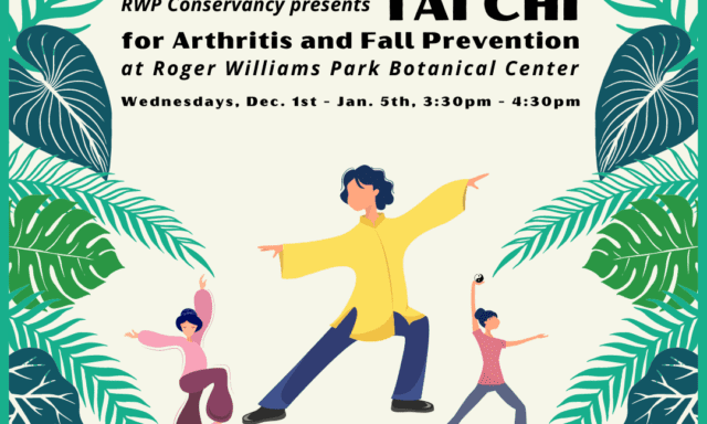 We are excited to offer a new six-week series, Tai Chi for Arthritis and Fall Prevention led by Colleen Shea. This series is sponsored by the Roger Williams Park Conservancy. All classes will take place in-perso in the tranquil setting of RWP Botanical Center on Wednesdays from 3:30-4:30, December 1st through January 5th. Experience how Tai Chi can embrace your mind, body, and spirit! Sign up for the whole series or individual sessions.