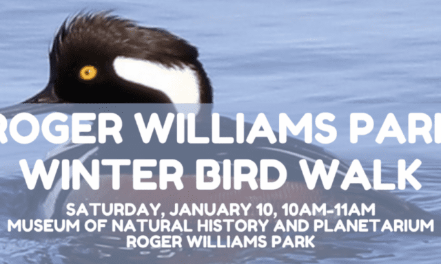 Join us as we brave the winter temps in search of some feathered friends in Roger Williams Park. Some possible sightings include woodpeckers, chickadees, finches and hawks. We will pay special attention to the ponds where wintering waterfowl can provide unexpected species. Please wear comfortable shoes and bring binoculars if you have them. All skill levels are welcome. Walks meet at the Museum of Natural History and Planetarium. Pets and strollers are not permitted. Program fee per session: $3 per person/free for museum members. Pre-registration required.