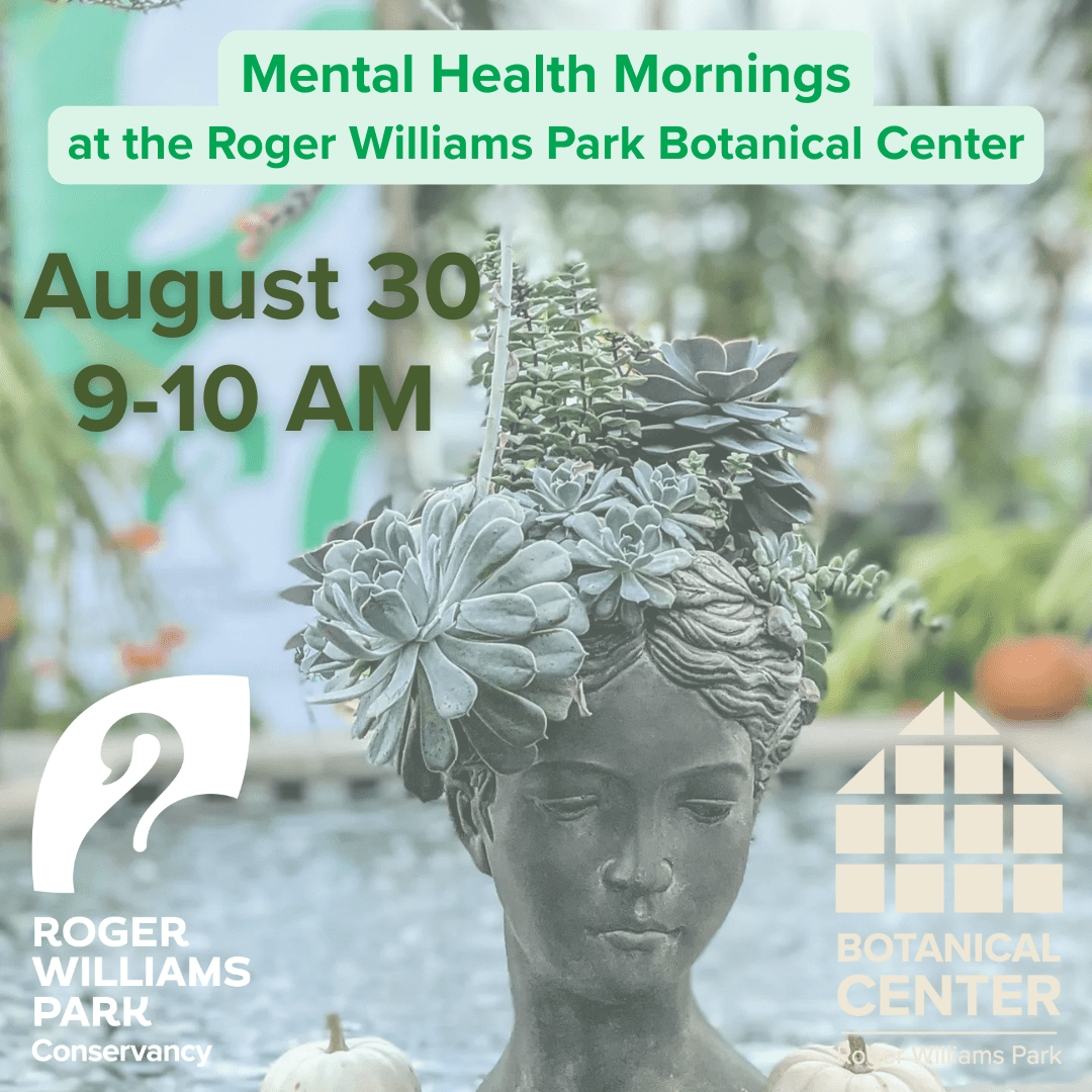 Mental Health Morning at RWP Botanical Center Saturday, August 30 9:00 - 10:00 AM Join us for an hour of calm in the magical space of the Botanical Center with a relaxed session guided by heath expert Sandra Victorino, presented by the Roger Williams Park Conservancy. Registration is free but required in order to keep […]