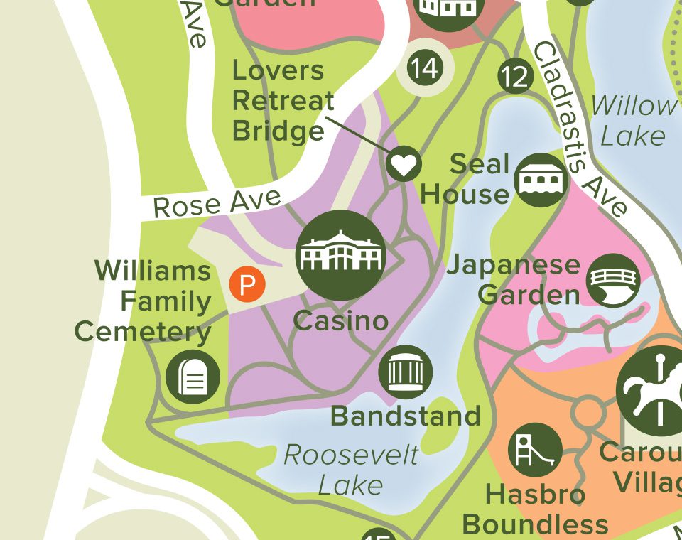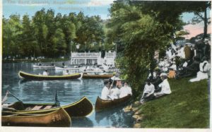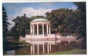 The first bandstand was a “pedestrian” structure that looked much like a South County village pier. In 1915 the original structure was replaced with this ornate structure of copper and papier mache. 12 Corinthian columns support a 30-foot diameter dome roof. The Providence Parks Department recently restored the Bandstand, with more restoration planned soon.