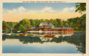 For decades the Boathouse was popular all year long: boating in summer and skating in winter. Today the Clark Dalrymple Boathouse houses offices for the Parks Department, and the Roger Williams Park Conservancy.