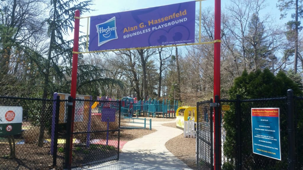 located in the Roger Williams Park Carousel Village, near the Carousel Village Café. The colorful, fully enclosed playground with a Mr. Potato Head who greets children of all ages as they enter the park, now boasts a toddler area, slides, drums, play panels throughout the labyrinth of walkways, swings, slides and climbing structures. Children with physical disabilities can enjoy at least 70% of the play activities without having to leave their support equipment behind. The equipment fromPlay & Park Structures is designed to be sensory rich and developmentally appropriate so children with all types of abilities can laugh, play and grow together.