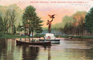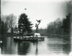 Also called the Dyer Memorial, The Falconer can be seen on many historic Park postcards. Its original location was a striking one in the center of what is now Pleasure Lake. Created in 1889 by Henry Hudson Kitson who also designed Mayor Doyle’s statue in downtown Providence. Kitson also created the famous monument, The Minute Man, in Lexington, Massachusetts.