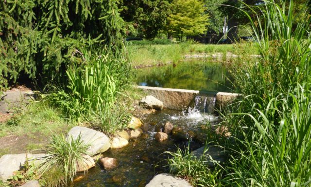 High levels of nutrients – from animal waste, fertilizer, etc. – wash into our rivers and streams and can degrade Rhode Island’s water quality. The RI Department of Health recently issued an advisory about harmful to humans (and pets!) blue/green algae appearing in some Rhode Island waterbodies, including Elm Lake, Roosevelt Lake, and the Japanese Gardens in Roger Williams Park. The Providence Parks Department is addressing water quality at the Park by shepherding and installing “green infrastructure” projects that help to filter and treat “stormwater” and reduce phosphorus (nutrient) contamination. Techniques include bioretention gardens, pavement removal, infiltration basins and flumes to redirect stormwater. You too can help by not feeding the ducks or geese that congregate at the water’s edge! Learn more about green infrastructure at www.greeninfrastructureri.org