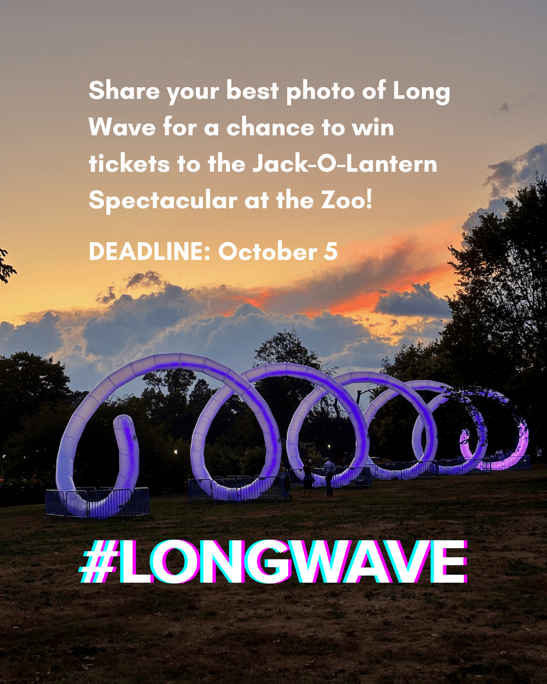 Have you taken a photo of Long Wave worthy of sharing with the world?ย Tag us on Instagram (@rogerwilliamspark) and use the hashtag #LongWave or send us an email ([email protected]) with your photo, and you could win tickets to experience theย Jack-O-Lantern Spectacularย at the Zoo! Join us forย Sunset at Long Wave Friday, October 3ย for a chance to hang out, listen to music, and take stunning photos of Long Wave.ย Photo contest deadline: October 5!