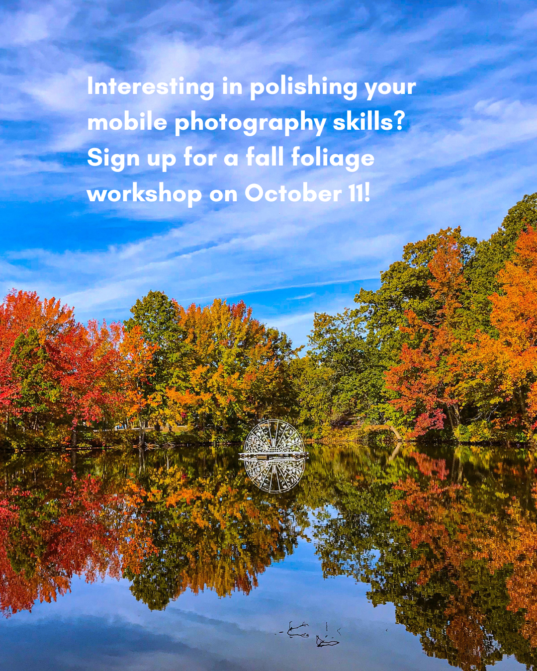 Learn the art of mobile photography!ย No camera? No problem! Bring your phone for a free workshop with local photographer and RWPC Program Manager Josรฉ Ramirez (@jram9808ย on Instagram), who offers his expertise and instruction before encouraging participants to explore and apply newly learned techniques to capture the beauty of the Park in its autumn glory!ย Space is limited, soย register onlineย for the Saturday, October 11 workshop.