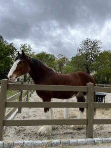 Most of horses that live in the park come from St. Louis, surplus Clydesdales from the Anheuser-Busch stables. Courville calls the draft horses the golden retrievers of horses: people-loving, open, sweet, and trainable.