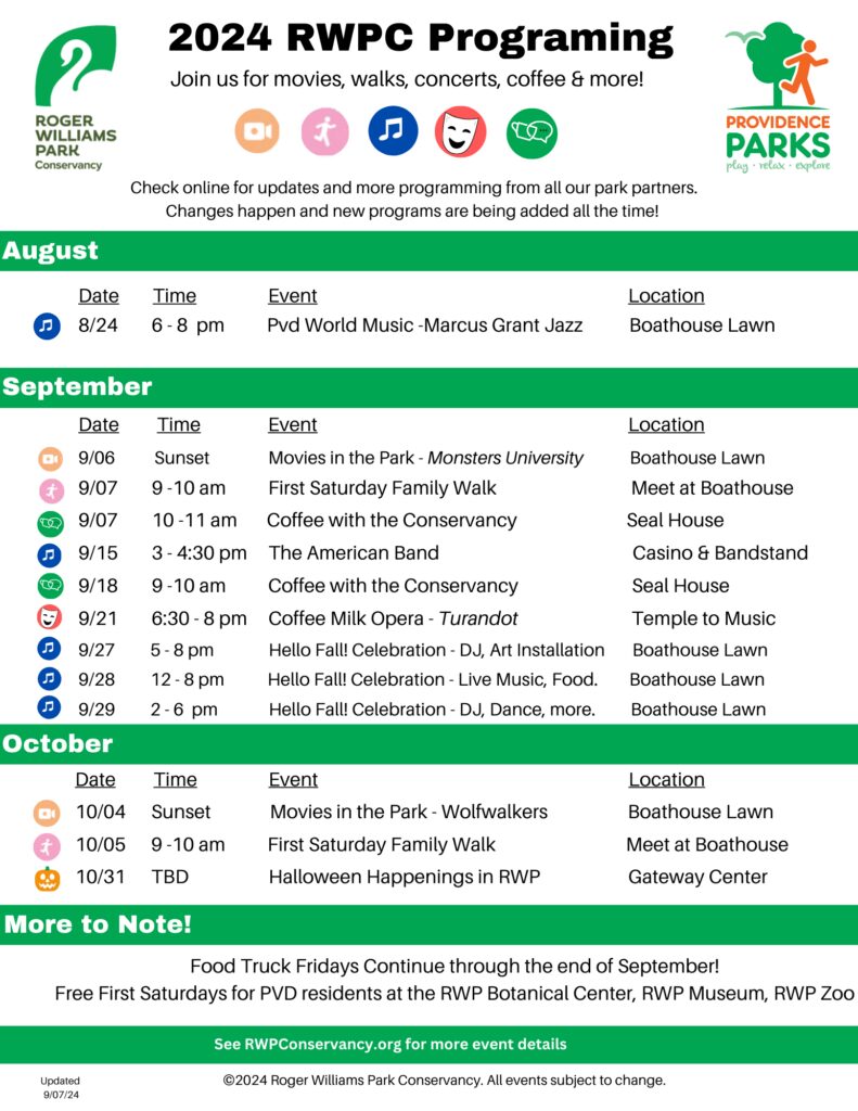Here is a list of upcoming programs sponsored by the Roger Williams Park Conservancy.